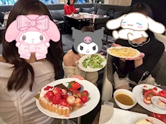 お休みの日に なみちゃんとせりちゃんと ビュッフェに行きました🍓 いちご大好きなので 念願のビュッフェです🍓 甘いものすぐに 満足するから ちょっと心配だったけど ポテトフライとかカレーとか しょっぱい系もあって 結構食べられました😋 楽しかったなぁ また遊びに行こうね🥰 👋