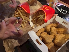 本日21時より出勤です🍀 マックパーティ🍔 🍟 なみちゃんと一緒に 飲みに行きまして お腹すいたし💭 なにかつまめるものを‼️ と思って選ばれた ポテナゲ特大😂 お腹が空いていたので パクパク食べておりました🙂↕️ 急に来るマック欲 お腹も心も満たされて ハッピーでした😆 めちゃくちゃ楽しかった🫶 いつもありがとうだよ⸜🌷︎⸝ 👋
