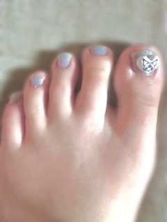 おはよ〜☀️ イベントに合わせて フットネイルしたんだけど どうしてもパーツつけたくて… 1個だけ付けちゃった🤣 なかなかフットネイルって やらないけど 新鮮で面白かった! てかこれもしかしてだけど ストッキング破ける…? まあいいか😇 ちなみに イベント中は ローファーなので 見えません笑