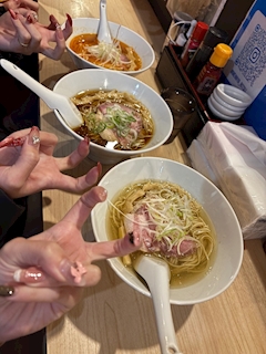 おはよ〜☀️ 退勤後のラーメンって なんであんなに美味しいんだろ🤔 らーめんずの みさきとみゆきちと 安定に 塩ラーメン頂きました😋 最近 写真撮るとこのポーズするんだけど なにこれ?? かにの爪? 不思議だけど そのノリに乗ってくれる この子達はいい子です笑 いつもありがとうだよ🫶