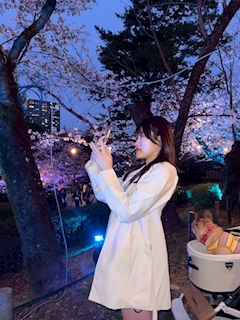 お花見いったー! この後隣の🐶も📸目線してくれてめちゃくちゃ可愛かったの笑 昼間とはまた雰囲気が変わるから夜桜もだいすき✨️ ライトアップありがたいね♡