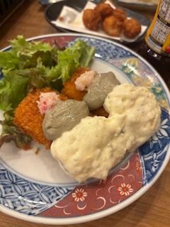 本日21時より出勤です🍀 私カニクリームコロッケが めちゃめちゃ大好きで🦀 磯丸水産で見かけたから 一旦注文してみた‼️ なんかめちゃ豪華👀 お布団かかってるみたい💭 ざっくざくでボリューミーで 1個で満足感すごい👍 いつもさくっと食べられる 小さめのカニクリームコロッケ ばかりだったけど こんなザクザクで トロトロなカニクリームコロッケ 初めてレベルだったから💭 これはハマりそう でも最低2個注文だから ほかのもの頼む時 色々計算しないとね😂 👋