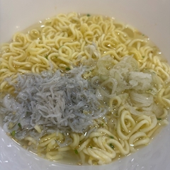 いつぞやの虚無ご飯🍜 袋麺をレンジで調理して 冷凍してあった しらすとネギをぶちこんだ😃 どうしてもラーメンが 食べたかったのと 冷凍庫の容量を ちょっと増やそうと思って 脳死で作った👍 結構いけたので 準レギュラーいり?? しそうです✨ 👋