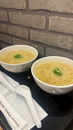昨日朝からりりちゃんと汁そば食べた!(o🪄'▽')o🪄 ミスドでドーナツ以外初めてたべた! おいしかった🎵🩵 今日は胃もたれ〜👋🏻👋🏻👋🏻