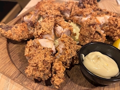 数年ぶりの友達とご飯🍚 でっかい揚げ鶏🍗 友達はみんな お酒大好きで めっちゃお酒飲みまくってたけど🥃 私はとにかくご飯‼️ って感じだったので お茶をしばきながら ご飯に没頭してました🤤 ちょうどご飯を いつも以上に 食べられるフェーズだったので 普段は避けている 好きだけど食べきれない 甘いもの🖱☁️ チョコスモア🍫 お酒を飲まない代わりに 好きな物頼んでいいよって なったので いざ挑戦💭 いつもは一口で 大満足のチョコスモア 今回は👀 ひとりで全部ペロッと😇 くどいなぁと 感じることもなく おいしーく食べられた🤤 この後ちょっと しょっぱいもの食べたけど🤣 次は色々と散策して ふらっと良さげなとこ 入ろうねーて 約束しました🤞 👋